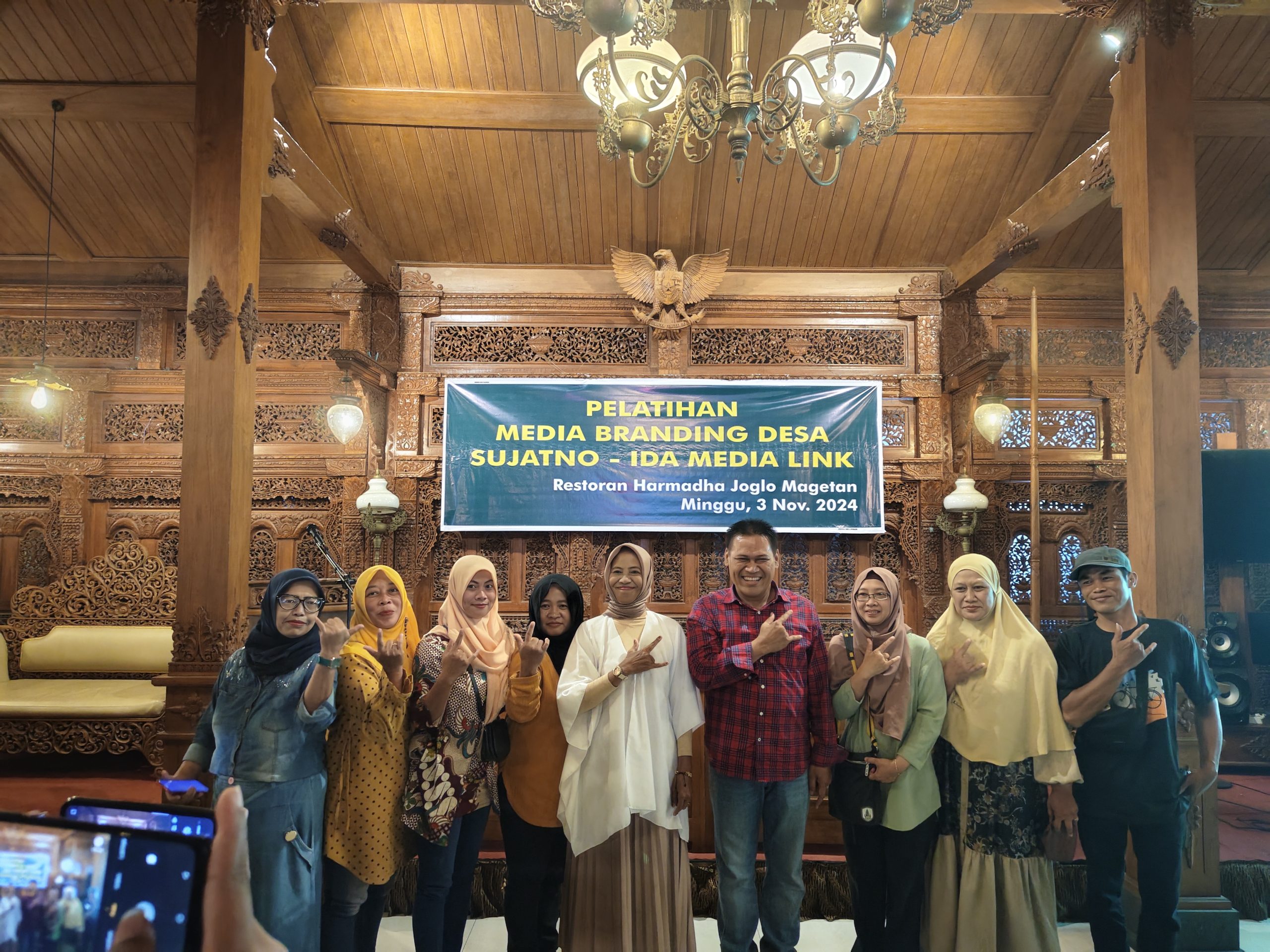 Magetan - Ratusan warga dari seluruh penjuru Kabupaten Magetan berkumpul dalam satu tujuan, belajar cara membuat desa makin keren lewat digital branding di Hamadha Joglo Magetan, Minggu (3 November 2024). Pelatihan yang digagas Sujatno Ida Media Link ini mendapat sambutan hangat, apalagi dengan kehadiran sosok inspiratif, Sujatno, calon Bupati Magetan nomor urut 3 sebagai sosok enterpreneur sukses